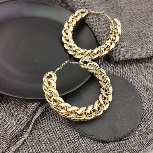 Earrings for Women and Girls Fashion Golden Hoops | Gold Plated Punk Cuban Chain Big Circle Hoop Earrings | Birthday Gift for girls and women Anniversary Gift for Wife