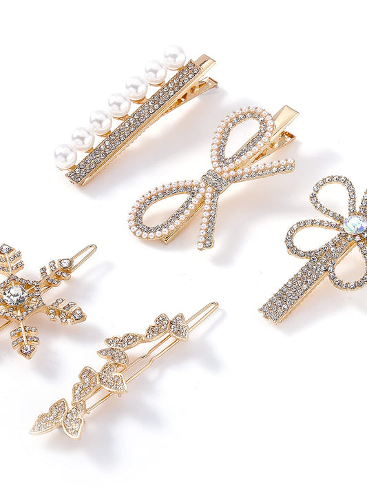Hair Clips for Women Girls Hair Accessories for Women White Crystal Hair Clip 5 Pcs Hair Clips for Girls Hairclips Alligator Clips for Hair Pins for Women and Girls Gift For Women & Girls