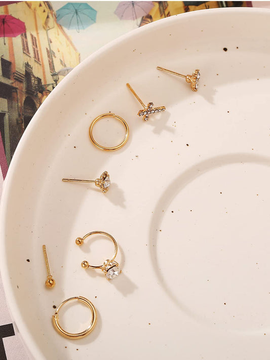 Earring For Women Gold Toned Set Of 7 Pcs Different Designed Stud and Hoop Earrings For Women and Girls