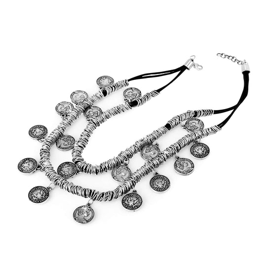 Oxidised Necklace for Women Silver Oxidised Crafted Bohemia Gypsy Coins Traditional Layered Necklace for Women and Girls.