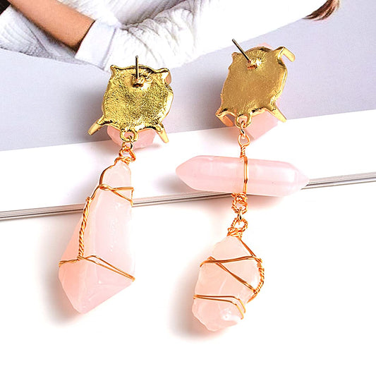 Latest Fashion Gold Plated Geometric Design Peach Stone Drop Earrings for Women and Girls, Medium (YCFJER-STNDROP-PCH)