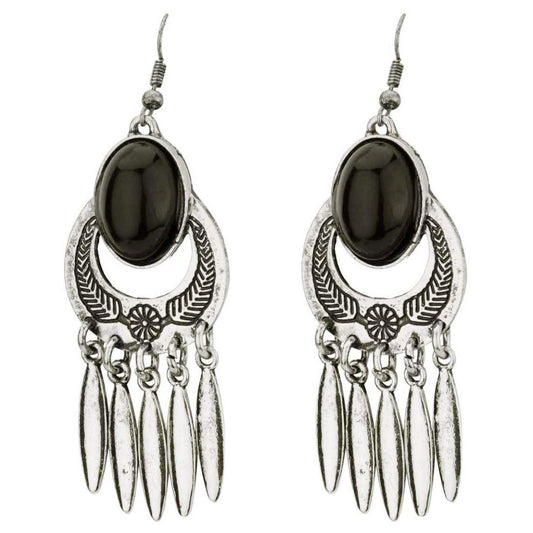 Women's Exclusive Stylish Infinity Petals Brilliant Opal Oxidized Silver Plated Base Metal Tassel Drop Earrings (Black)