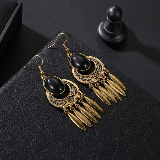 Women's Exclusive Stylish Infinity Petals Brilliant Opal and Oxidized Gold Plated Base Metal Tassel Drop Earrings (Gold, Black)