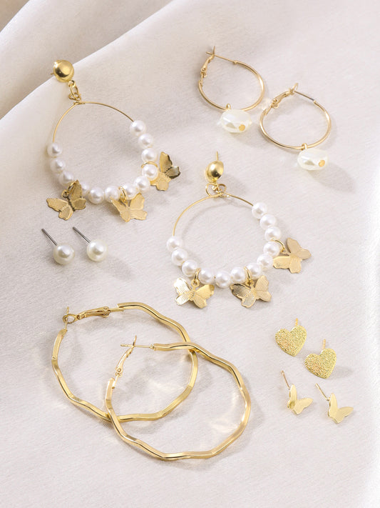 Combo Earrings For Women Set Of 6 Pairs Earring Gold Plated Stud and Pearl Hoop Earrings For Women and Girls