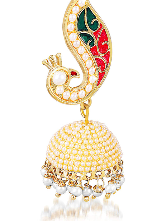 White, Golden Copper gold-plated Traditional Pearl Moti Jhumka Earrings for Women and Girls