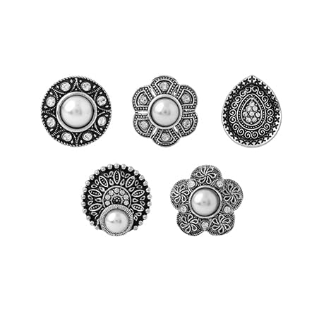 Rings for Women and Girls Traditional Oxidised Silver Rings for Women | Silver Oxidised Plated Combo of 5 Pcs Adjustable Rings | Birthday Gift For Girls & Women Anniversary Gift for Wife