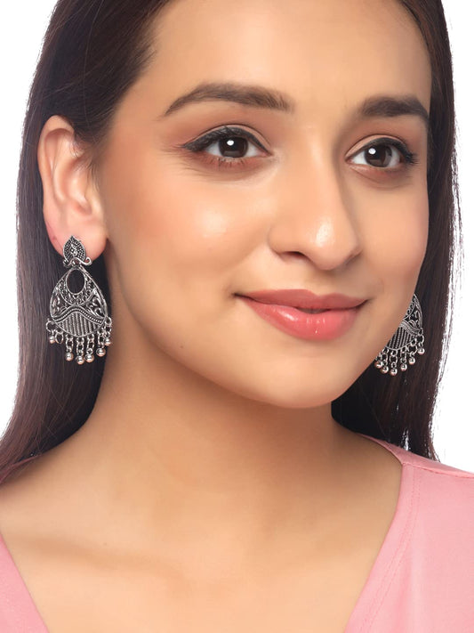 Oxidised Earrings for Women Set of 2 Pairs Oxidised Silver-Plated Traditional Chandbali Earrings For Women and Girls