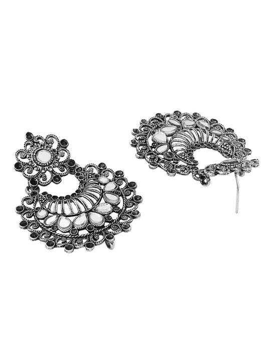 Earrings For Women Floral Designed Silver Toned Mirror Studded Vintage Chandbali Earrings For Women and Girls