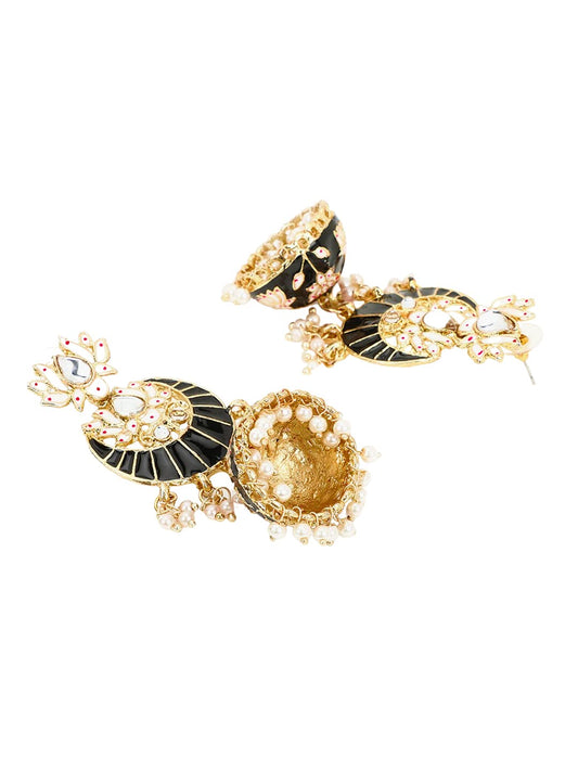 Meenakari Jhumka Earrings for Women Ethnic Gold Plated Traditional Black Chandbali Jhumka Earrings for Women and Girls