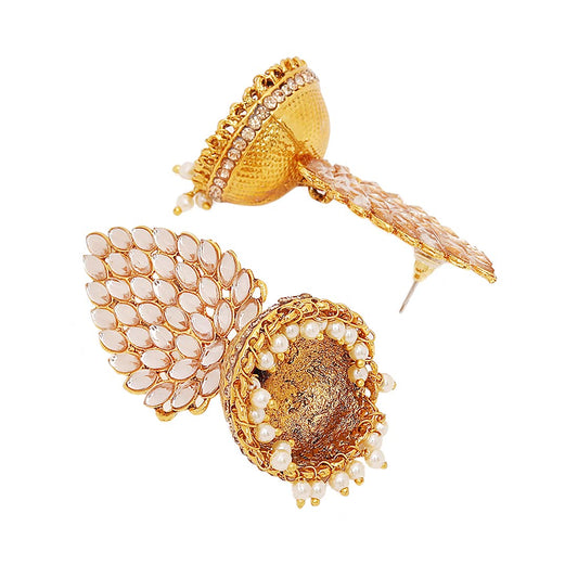 Kundan Studded Leafy Gold Plated Traditional Jhumka/Jhumki Earrings for Women and Girls