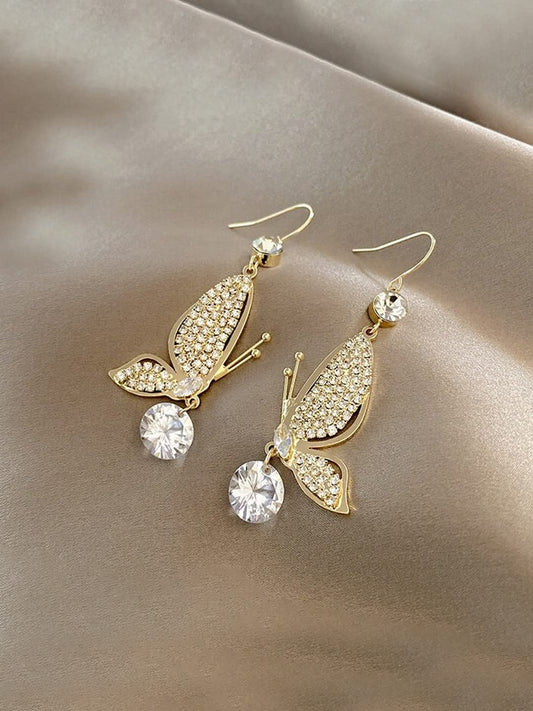 Earrings For Women Gold Tone Crystal Studded Fly Shape Drop Earrings For Women and Girls