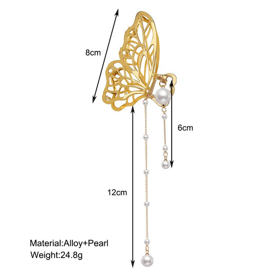 Hair Clip For Women Gold Tone Butterfly Shape With Pearl Beads Cluthers Hair Claw Clip For Women and Girls