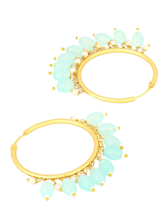 Earrings for Women Gold Toned Sea Blue Pearl Drop Hoop Earrings for Women and Girls