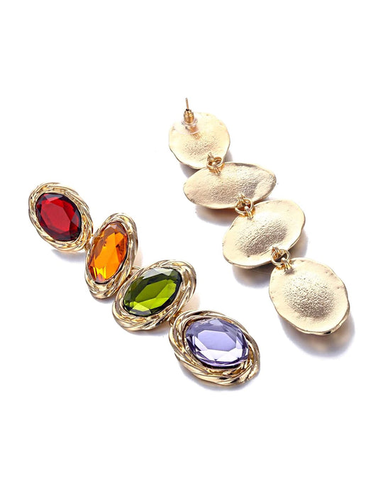 Earrings for Women and Girls Fashion Crystal Dangler Earrings | Gold Plated Multicolor Statement Style Long Danglers Earrings | Birthday Anniversary Gift for Girls & Women