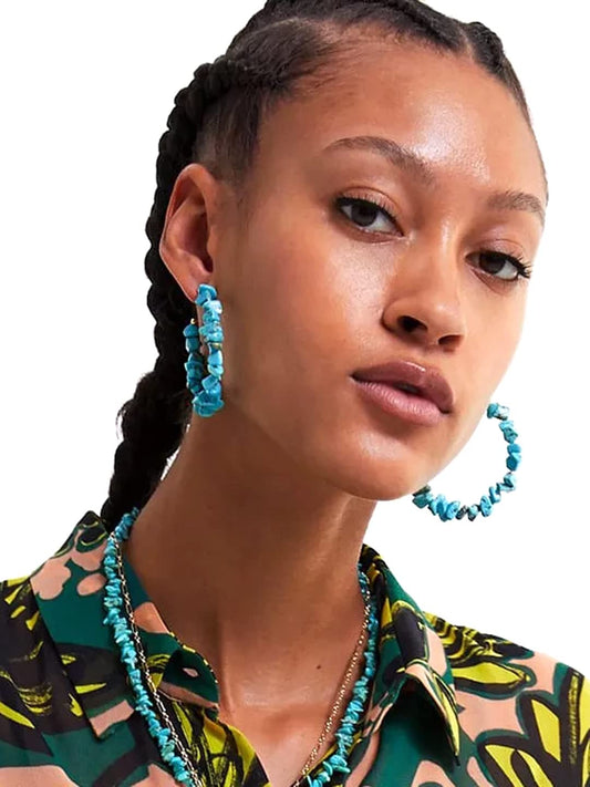 Earrings For Women Blue Stone Beaded Open Hoop Earrings For Women and Girls