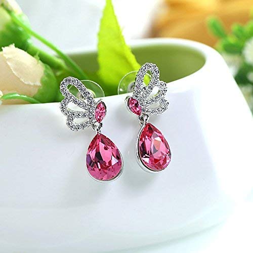 Earrings for Women and Girls | Fashion Pink Stone Studded Crystal Drop | Silver Tone Drop Earring | Oval Shaped Drop Earrings | Accessories Jewellery for Women | Birthday Gift for Girls and Women Anniversary Gift for Wife