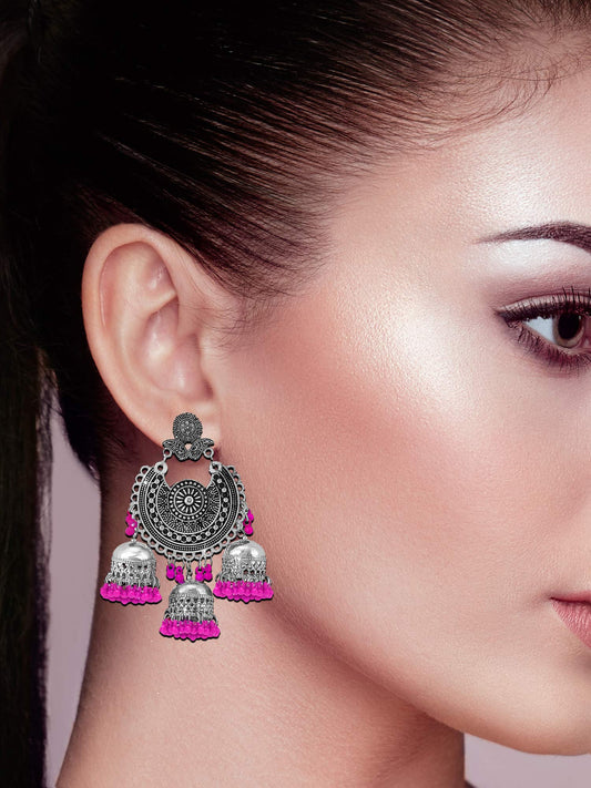 Oxidised Jhumka Earrings for Women Silver Oxidised Afghani Navratri Garba Style Traditional Maang Tikka with Jhumka Earrings for Women and Girls.