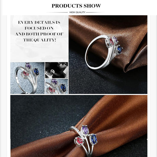 Rings for Women Silver Crystal Ring Three-Leaves Classic Design Platinum Plated Ring for Women and Girls.
