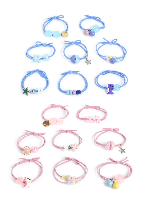 Hair Accessories for Girls Combo of Hair clips and Ponytail Holder with Cute chararcter emblished on it for Kids and Girls (Pink)