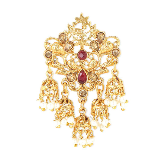 Maang Tikka for Women Gold Toned Kundan Studded Beads Drop Chandbali Designed Maang Tikka for Women and Girls