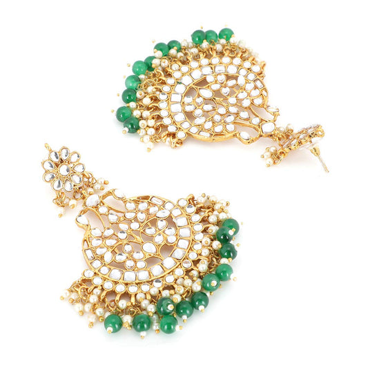 Ethnic Gold Plated Green Meenakari Touch Traditional Kundan Studded Round Design Pearl moti Dangler Earrings for Women and Girls, Medium (YCTJER-82KUDCR-GR)