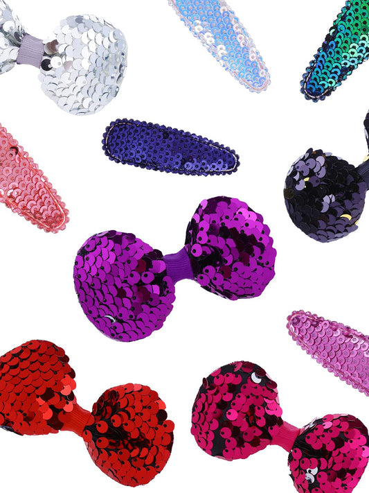 Melbees by Combo of Sequins Fashion Bow Hair Clips and 5 Pairs of Snap Hair Clips for Girls Kids Hair Accessories (Pack of 15), Multi-Color, Medium