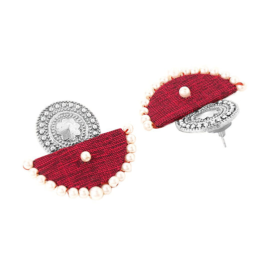 Earrings for Women and Girls Traditional Silver Oxidised Drop|Maroon Woven Wrapped Pearl Drop Earrings|Birthday Gift For girls and women Anniversary Gift for Wife
