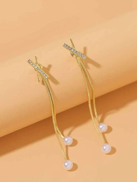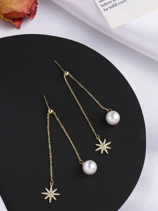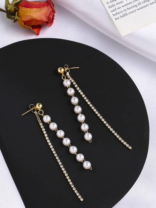 Earrings for Women and Girls Pearl Dangler | Gold Toned White Crystal Studded Long Danglers Earrings | Birthday Gift for girls and women Anniversary Gift for Wife