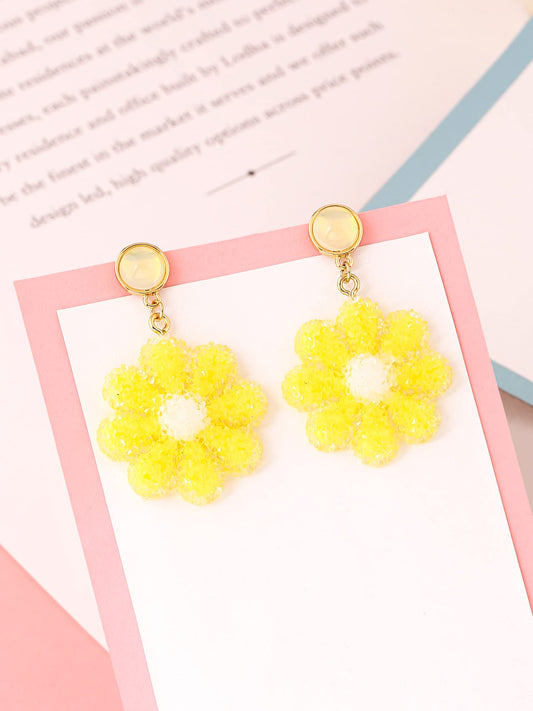 Earrings for Women and Girls Drop Earrings for Girls | Gold Toned Yellow Floral Drop Designed Drop Earrings | Birthday Gift for girls and women Anniversary Gift for Wife