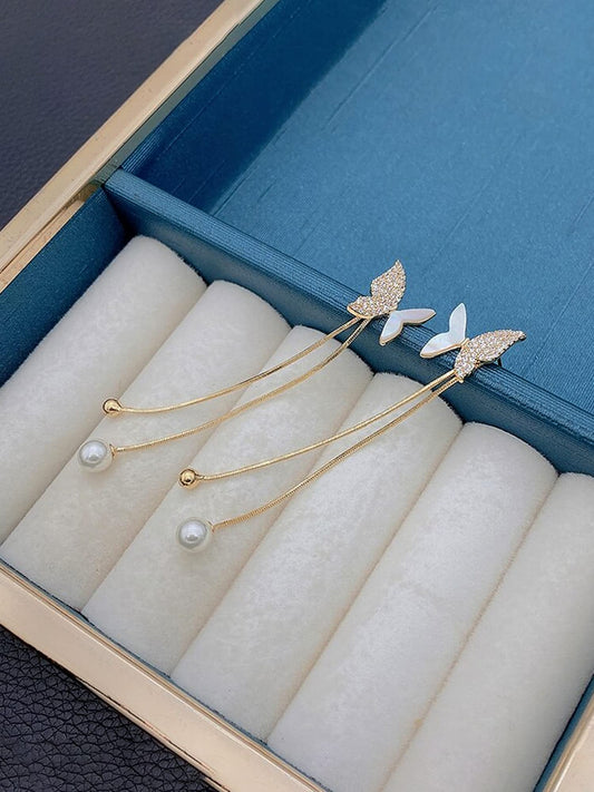Earrings for Women and Girls Pearl Dangler | Gold Toned Butterfly Designed Long Danglers Earrings | Birthday Gift for girls and women Anniversary Gift for Wife