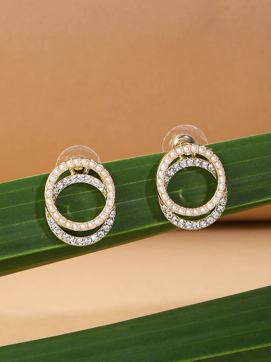 Earrings for Women and Girls Studs for Girls | Gold Toned Crystal & Pearl Studded Layered Circular Stud Earrings | Birthday Gift for girls and women Anniversary Gift for Wife