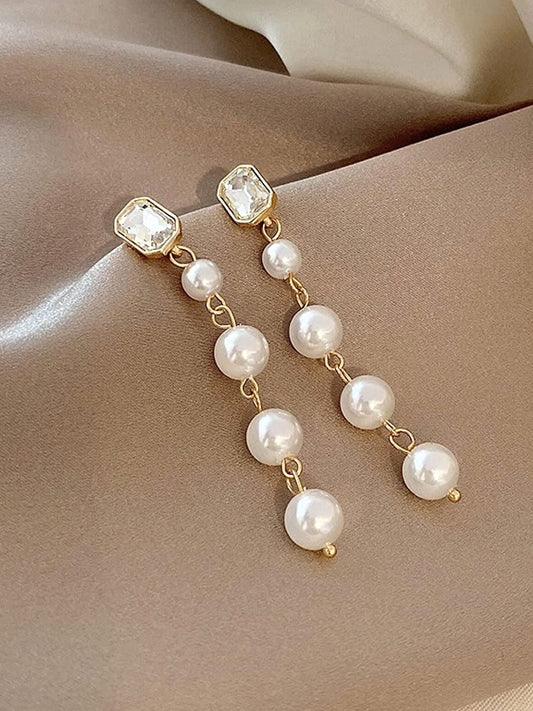 Earrings for Women and Girls Fashion White Pearl Dangler Earrings | Gold Plated Crystal Long Pearl Dangler Earrings | Birthday Gift for Girls & Women Anniversary Gift for Wife