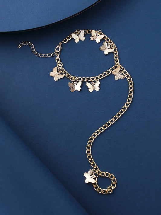 Ring Bracelet for Women and Girls Bracelet With Ring for Girls | Gold Toned Butterfly Charm Ring Bracelet | Birthday Gift For Girls and Women