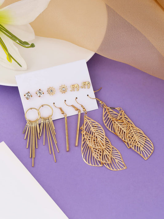 Earrings for Women and Girls Dangler | Gold Toned Combo of 6 Pairs Studs & Danglers Earrings | Birthday Gift for girls and women Anniversary Gift for Wife