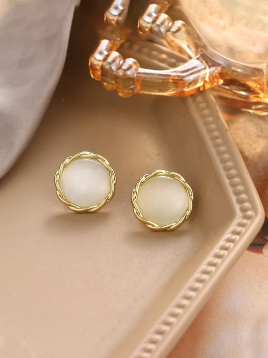 Earrings for Women and Girls Studs for Girls | Gold Tone Round Opal Stud Earrings | Birthday Gift for girls and women Anniversary Gift for Wife