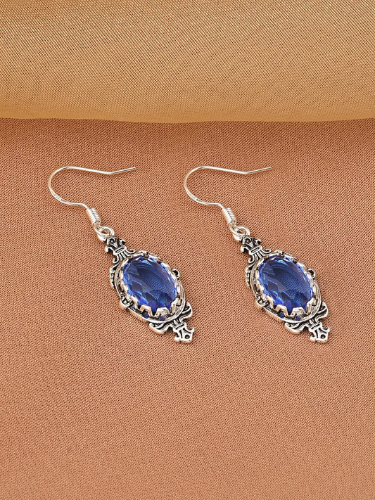 Earrings for Women and Girls Drop Earrings for Girls | Silver Plated Blue Crystal Drop Earrings | Birthday Gift for girls and women Anniversary Gift for Wife