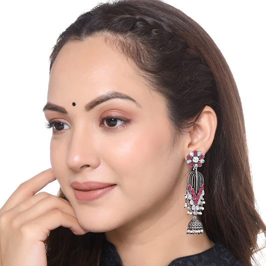 Earrings for Women and Girls Traditional Silver Oxidised Danglers Earrings | German Silver Dangler Earrings | Birthday Gift For girls and women Anniversary Gift for Wife