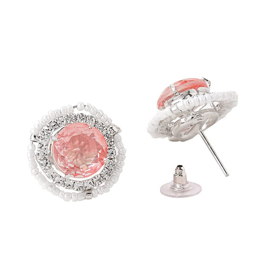 Earrings for Women and Girls Pink Crystal Studs | Silver Toned Circle Stud Earrings | Birthday Gift for girls and women Anniversary Gift for Wife