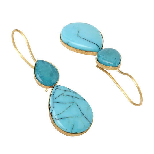 Earrings for Women and Girls | Gold Plated Dual Blue Stone Studded | Tear Drop Designed Drop Earrings | Birthday Gift for girls and women Anniversary Gift for Wife