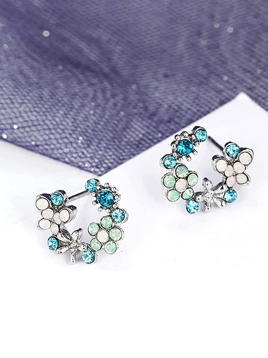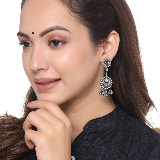 Earrings for Women Silver Oxidised Stone Studded Semi Round Drop Designed Earrings for Women and Girls