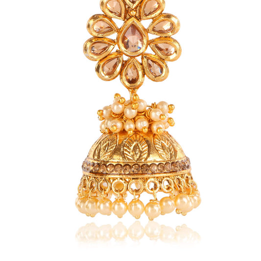 Floral Stylish Bandhani Work Kundan Pearl Gold Plated Jhumka Earrings for Women and Girls