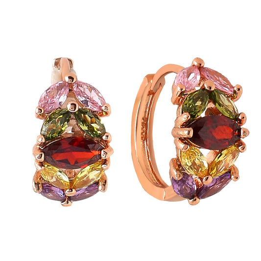 Hoop Earrings for Women Multicolor Swiss Zircon Rose Gold Plated Leafy Shaped Hoop Earrings for Women and Girls