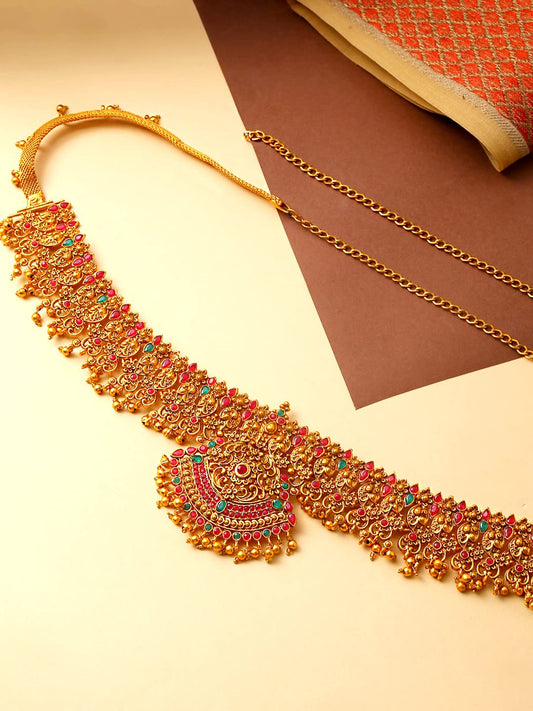 Kamarbandh For Women Gold Plated Multicolured Crystal Studed Traditional Bridal Saree Kamarbandh For Women and Girls