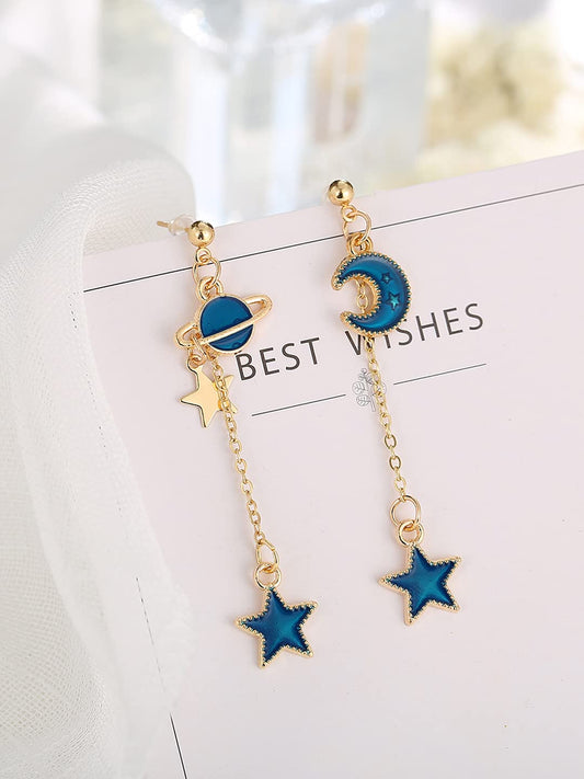 Earrings for Women and Girls Crystal Dangler | Gold Toned Star & Moon Designed Long Danglers Earrings | Birthday Gift for girls and women Anniversary Gift for Wife