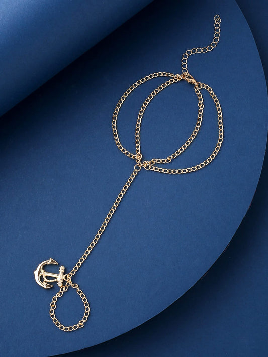 Ring Bracelet for Women and Girls Bracelet With Ring for Girls | Gold Toned Anchor Charm Ring Bracelet | Birthday Gift For Girls and Women