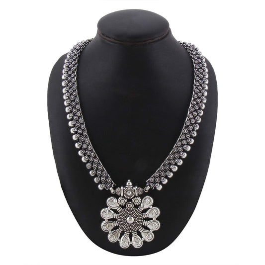 Oxidised Necklace for Women Silver Oxidised Necklace Floral Charm Traditional Long Chain Pendant Nacklce for Women and Girls