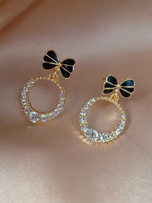 Earrings for Women and Girls Drop Earrings for Girls | Black Enamel Crystal Studded Circle Drop Earrings | Birthday Gift for girls and women Anniversary Gift for Wife