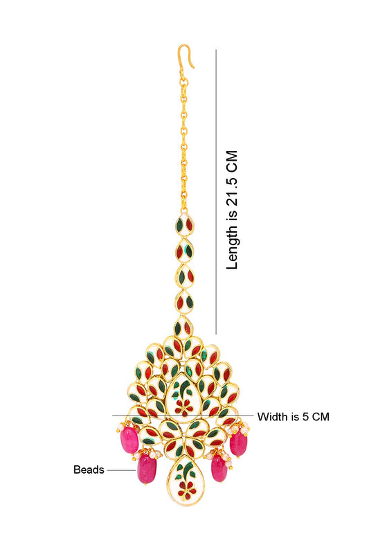 Traditional Gold Plated Kundan Studded Pink Moti Designer Ethnic Maang Tikka for Women and Girls