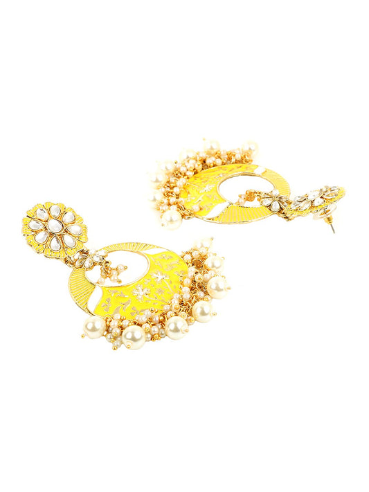 Meenakari Earrings for Women Gold Plated Traditional Moti Beads Yellow Meenakari Chand bali Earrings for Women and Girls
