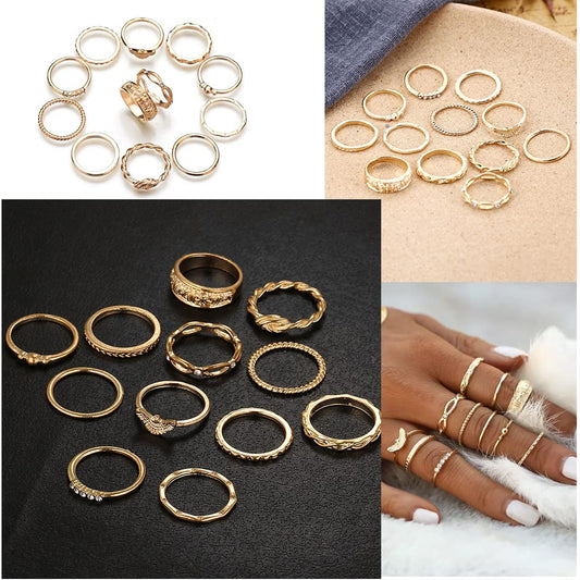 12 PCs Combo Boho Vintage Style Gold Plated Knuckle Rings Set for Women and Girls (YCFJRG-164KNL-C-GL)